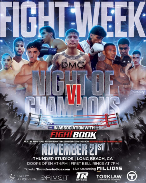 DMG Promotions returns TOMORROW with Fight Night VI, live from Thunder Studios in Long Beach, and this card is STACKED with SoCal’s most electric rising prospects.
