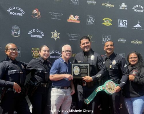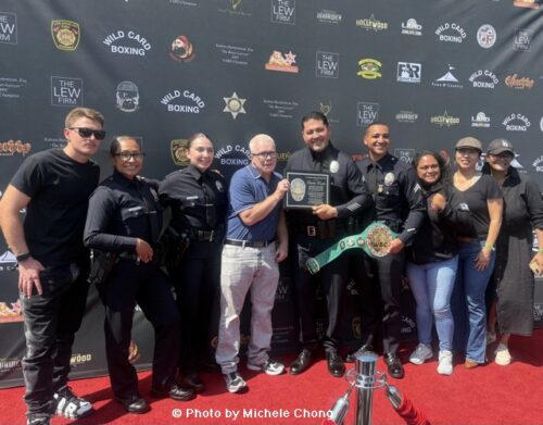 The Los Angeles Sheriff’s Department (LASD) and the Los Angeles Police Department (LAPD) were also onsite to join in the celebration. Former boxing champ John Molina Jr. was there in his sheriff’s uniform as he is currently working as an LA County Sheriff. The SoCal fighter introduced me to LAPD Chief Jim McDonnell and LASD Commander Capt. Oscar Barragan. Officer John Negrete (LAPD Boxing) was also there supporting Team Roach. And the trainer has been working in tandem with the force. The Freddie Roach Youth Boxing Academy in East LA has been helping the youth in partnership with the LA County Sheriff’s Dept. and the Sheriff’s Youth Foundation.