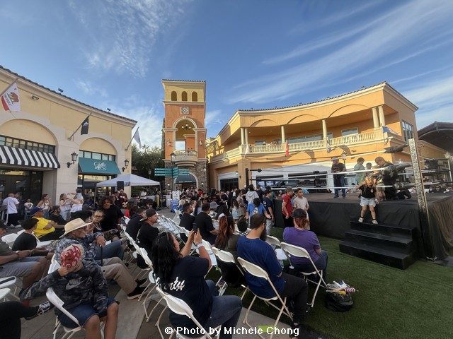 The outdoor ring was set up in the Simi Valley Town Center and visitors could also step into the Kid Gloves Boxing Gym to experience the spacious gym lined with posters, photos and awards. The Ortiz family has held several live fight nights (boxing, wrestling and MMA) at the current gym location; they’ve been in the Simi Valley Town Center for over 11 years now. Robert (Scraptime Promotions) mentions that he likes to host charity fight nights and fundraisers and through the years has had events in honor of Anti-Bullying, Parkinson’s disease, Breast Cancer, Diabetes and Autism Awareness, etc. They also host toy drives and bicycle giveaways for the underserved tots in the neighboring areas.